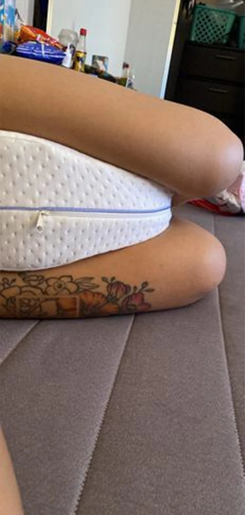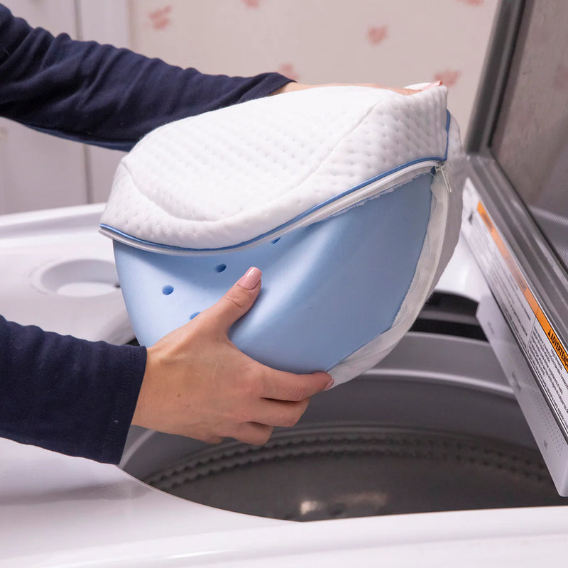 Simply place the pillow between your knees when lying on your side. The contoured shape will naturally fit your leg positioning. You can also position it between your thighs for hip support, or use it in different placements depending on your comfort preference.